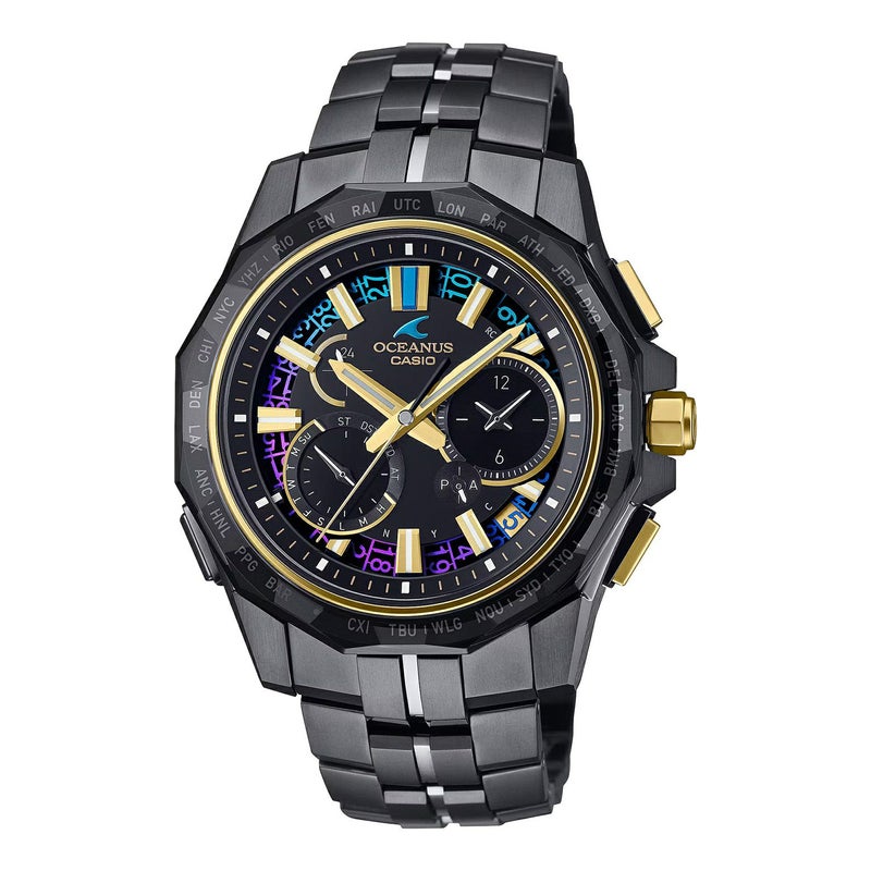 カシオ独自のソーラー充電システム、ガリウムタフソーラーを搭載。金属のダイアルとダイアルリングに施した色は、限りなく黒に近いミッドナイトブルーで、OCEANUSが探求してきた青の深遠さも表現しています。