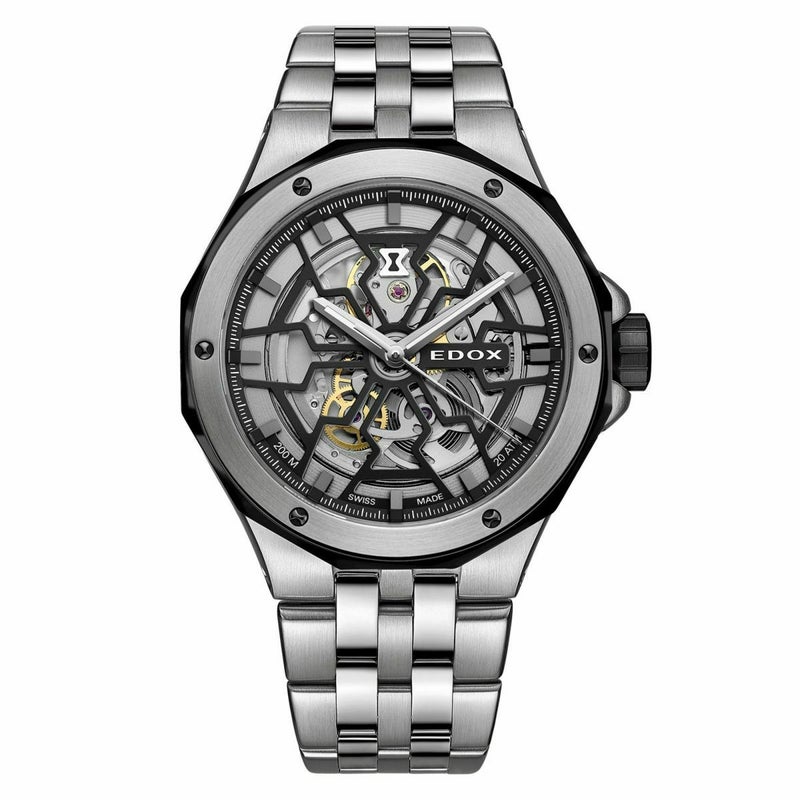 コンテンポラリーな雰囲気を纏うダイアルのカットワークは、エドックスのブランドエンブレムである砂時計を再解釈しデザインされました。丁寧に肉抜きされたスケルトンフェイスは男心をくすぐる仕上がりです。時刻を告げる腕時計を、視覚で愛でるタイムピースとして昇華させた『デルフィン メカノ オートマティック』。美しいカットワークアートと精巧なムーブメントの動きを、フルスケルトンの裏表から心ゆくまで鑑賞することができます。