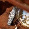 文字盤中央のクル・ド・パリ装飾、その周りでは35石のダイヤとマザーオブパールが可憐に輝きます。