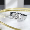 ローマ数字を用いたインデックスや秒針を省いた2針表示などシンプルでクラシックなデザイン。