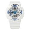 夏の海をイメージしたホワイト&ブルーのカラーリング、夜光虫が放つ幻想的な光を表現したブルー蓄光フェイスを備え、昼と夜で異なる表情を見せるビーチの情景を表現しました。特徴的なダイアルデザインの個性を色と光で引き立てます。