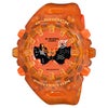 カラフルなスケルトンボディを纏い、フェイスにはオープンワーク(透かしの部分を作る技法)を施したダイアルとフルスクリーンLCDのレイヤー構造を採用。