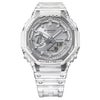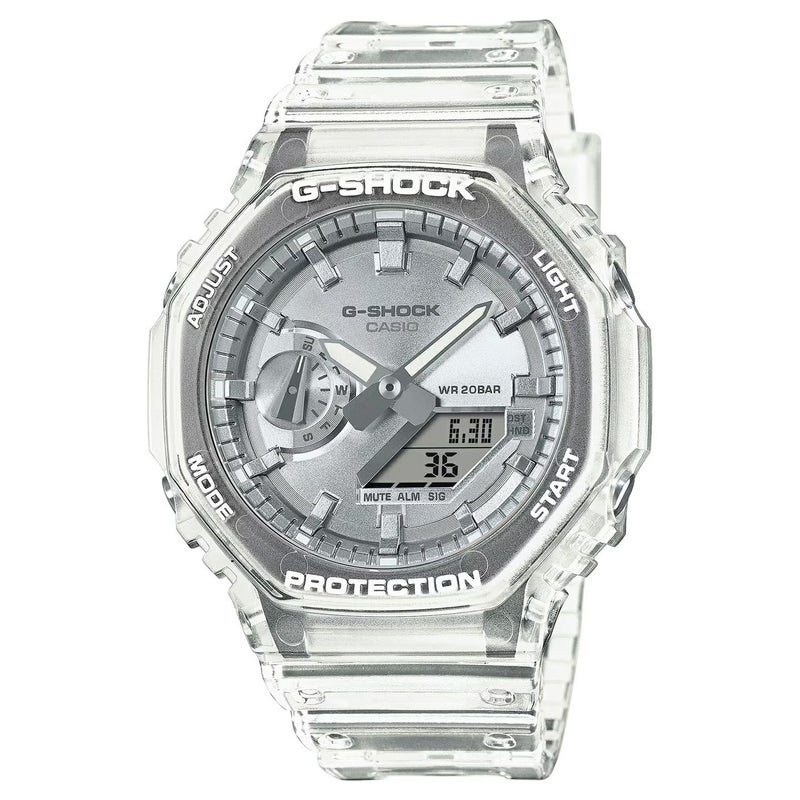 ベースモデルはオクタゴンベゼルのGA-2100を採用。文字板に人気のカラーリングであるメタル蒸着塗装を施し、ベゼルとバンドはスケルトン素材にすることでサマーシーズンに向けた涼しげな印象に仕上げました。