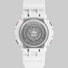 G-SHOCK全体にエヴァンゲリオン初号機が描かれ、12時側のバンドには初号機の頭部装備である角、ベゼル部分には初号機の顔、ベゼル下部から6時側のバンドにかけてはロンギヌスの槍を投擲しようとする左腕がデザインされています。