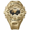 モジュールを保護するセンターケースをベゼル・バンド一体構造の外装パーツでカバー。大型の立体インデックスをガラス上面に配することで、衝撃を緩和するバンパーの役割も果たしています。