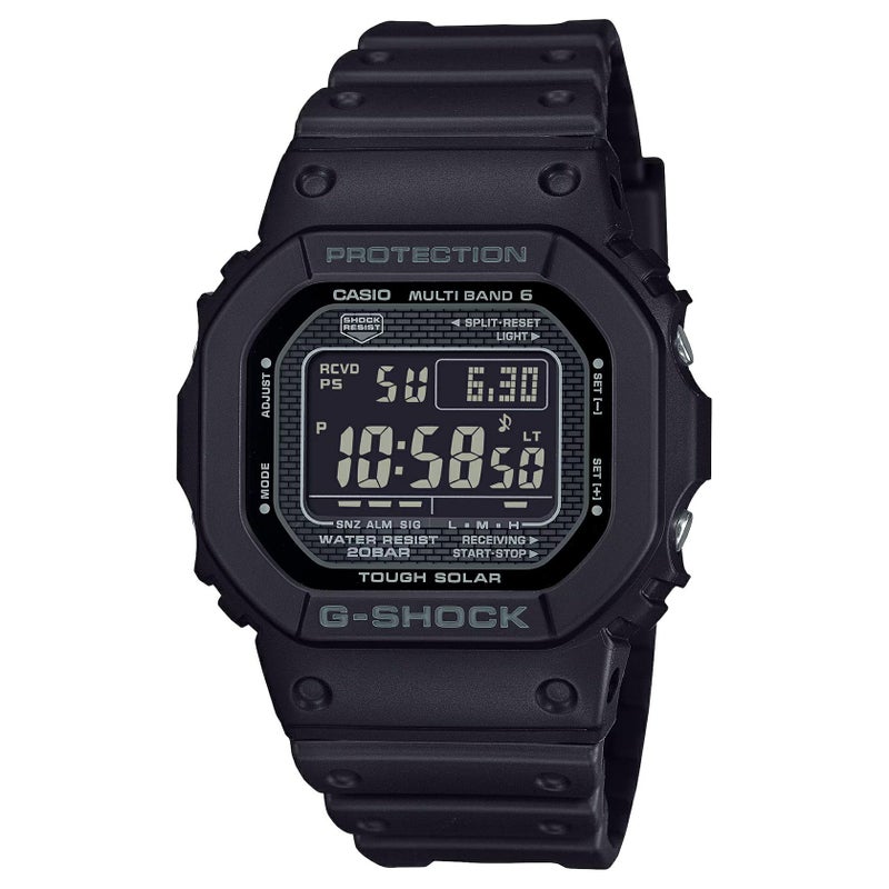 1983年に誕生したG-SHOCK初号機DW-5000CのDNAを受け継ぎ、電波ソーラーへと正統進化を果たしたGW-5000のモノトーンカラーモデルです。重厚なメタルケースやスクリューバック、フェイスデザインなど、初代モデルのディテールを再現しています。