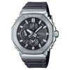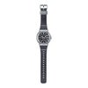 ベゼルは鍛造、切削、研磨を経て立体的に成型され、天面はヘアライン仕上げ、斜面はミラー研磨で美しく加工。インデックスやインダイアルのリングには微細加工と蒸着加工を施し、高級感を追求しています。バンドにはタフシリコーンバンドを採用し、耐摩耗性と快適な着け心地を両立。裏面のガンメタリック蒸着とヘアライン加工でフルメタルケースと調和させています。