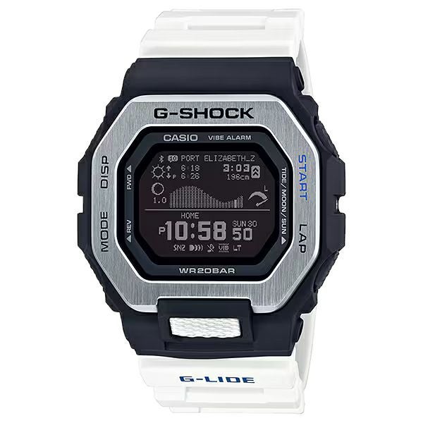 G-SHOCKのスポーツラインG-LIDEのスマートフォン連携モデルです。 潮汐情報や日の出/日の入時間を、専用アプリ内の世界約3300カ所から簡単に時計側に設定できます※。