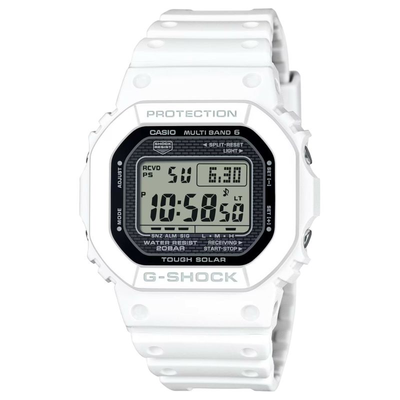 1983年に誕生したG-SHOCK初号機DW-5000CのDNAを受け継ぎ、電波ソーラーへと正統進化を果たしたGW-5000のモノトーンカラーモデルです。重厚なメタルケースやスクリューバック、フェイスデザインなど、初代モデルのディテールを再現しています。