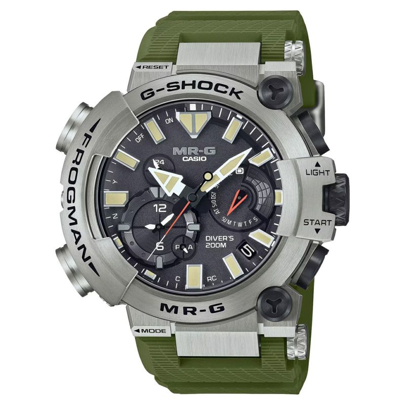 ISO規格200m潜水用防水機能を持つ本格ダイバーズウオッチ「FROGMAN」にチタン外装を採用し、丹念な仕上げを施したMR-Gです。