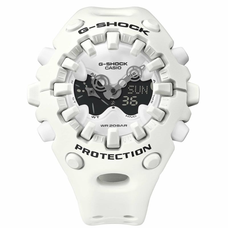 タフネスを追求し進化を続けるG-SHOCKから、エッジの効いたパーツを組み合わせたフォルム、大型全面液晶、ショックリリース針など斬新な発想でG-SHOCKのアイデンティティである「強さ」を形にしたモデルです。
