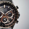 文字板には新開発である金属塗装を採用し、高級感ある仕上がりに。サブダイヤルはすり鉢状にすることで立体感を強調。ミラー面が際立つデュラテクトピンクとデュラテクトDLC の組み合わせにより、メリハリのあるシャープな表情を生み出しました。