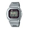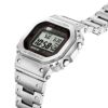 デザイン面では、ヘアラインと鏡面仕上げを使い分け、チタンカーバイトのコーティングにより美しいシルバーカラーに。DW-5000C のアイデンティティである、レンガパターンとレッドのサークルラインもダイアルに受け継いでいます。