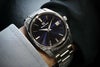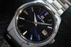 落ち着いた紺色のダイヤルがスタンダードなケースデザインや40mmというサイズ感と相まってシチュエーションを選ばず着用いただけます。