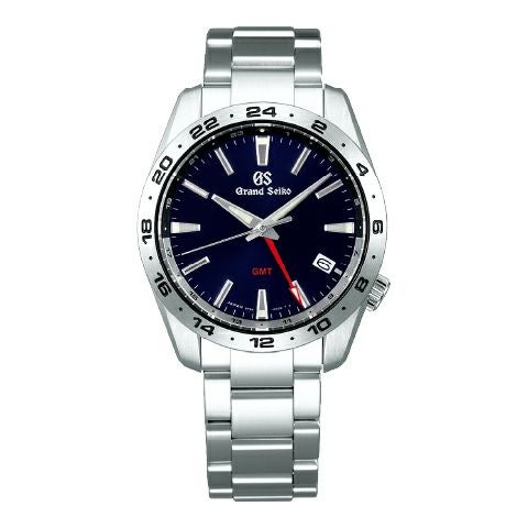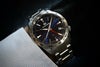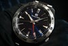 存在感のあるGMT針と上下ツートーンのダイヤルリングが生み出すコントラストが艶のある紺色のダイヤルに映え、GMT針が指し示す時刻の昼夜を直感的に判別することができます。