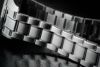 放射を施したブラックダイヤルが、引き締まった表情をより一層引き立てます。