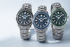 ザラツ研磨によるチタンケース、バンドの上質な仕上げ、カラー蒸着をあしらったサファイアガラスベゼルなど、フラッグシップラインならではのこだわりをそのままに、時・分・秒針のシンプルな3針仕様で、美しさと高い視認性を実現しています。