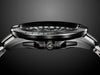 月の光に照らされた夜の海を、オールブラックのチタン外装と江戸切子のサファイアガラスベゼルで表現しました。硬いサファイアガラスに幅、深さを均一に切り込みを入れ、江戸切子にしか表現できない煌めきとシャープな美しさが魅力です。