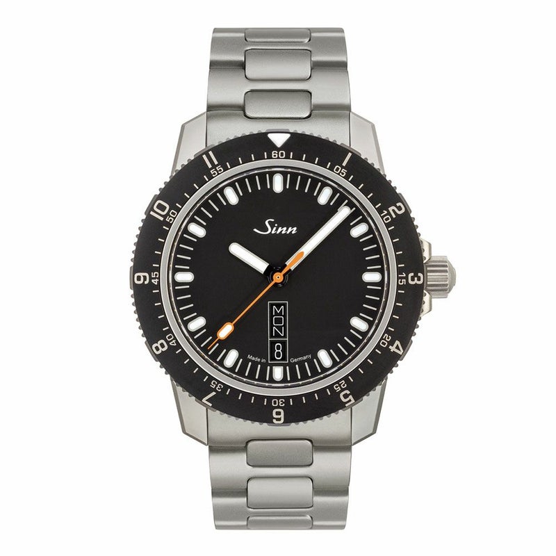 このモデルにはオレンジ色のアクセントが効いたマットホワイトダイヤルのモデル「105.ST.SA.W」もあります。どちらのダイヤルもデイデイト表示を備え、曜日表示は英語とドイツ語で設定することが可能です。