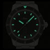回転ベゼルにはブラック・ハード・コーティングが施され、サンドマット加工のケースに特殊結合方式で固定されているため、絶対に外れることがありません。