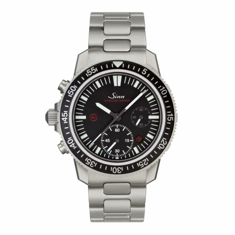 このダイバーズクロノグラフは、機能的には最も伝統的なスタイルを持ちながら、技術的に多くの利点を備えたミッションタイマーです。ダイバーズウォッチにとって重要な要素となる視認性に焦点を当て、EZM13.1にはジンのキャリバーSZ02を搭載しています。このムーブメントの最大の特徴は6時位置に大きく配置された60分積算計で、経過時間を素早く直感的に読み取るのに役立ちます。文字盤のデザインはアラビア数字を省略することで最適化され、これにより技術的な機能だけでなく、視覚的な機能も強化されています。さらに、Arドライテクノロジー、マグネチック・フィールド・プロテクション、ジン特殊オイル66-228といったジン・テクノロジーにより耐久性を高め、水中でのクロノグラフ操作も可能です。
