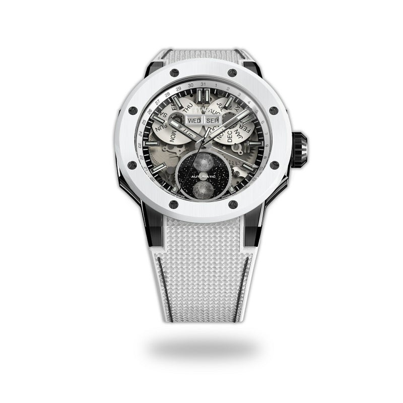 HYBRID ORIGINAL GLACIER は、南極の生態美を白と黒のレイヤーで描き出すことで「南極氷河」を表現したフルカレンダーコンプリケーションウォッチです。