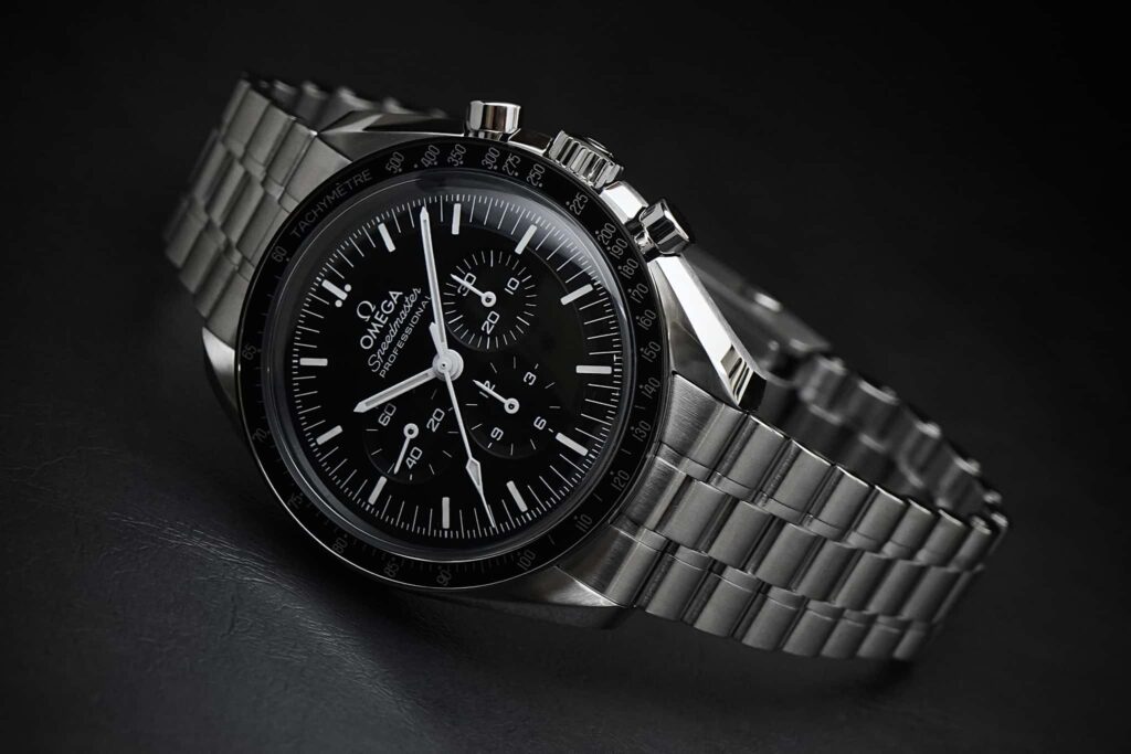 オメガといえばスピードマスター、その中でもムーンウォッチはまさに王道中の王道。このモデルは風防にサファイアクリスタルを採用しており、視認性・耐傷性ともに優秀です。